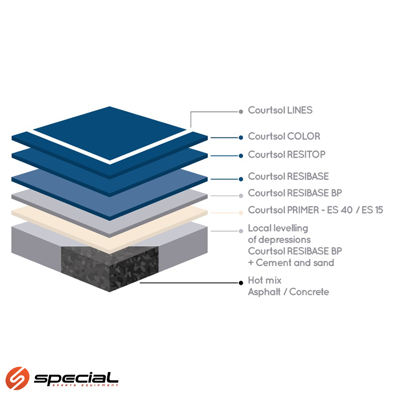 4-slojni sustav za nove ili postojeće asfaltne i betonske terene, igrališta ili slične podloge.