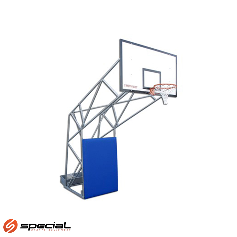 Košarkaška konstrukcija prijevozna. Vruće pocinčana čelična cjevasta konstrukcija promjera 40 mm s ukrućenjem i ojačanjima. Projekcija konstrukcije 225 cm. Balastni kontejner od vruće pocinčanog čeličnog lima koji se montira na stražnju stranu konstrukcije. U kompletu s košarkaškim pločama od melaminike dimenzija 180 × 105 cm i debljine 10 mm postavljenim na okvir od pocinčanog čelika, fiksnim obručima od obojenog čelika i najlonskom mrežom. Uključuje mehanički uređaj za podizanje, od pocinčanog čelika, za podizanje i transport cijele konstrukcije pomoću gumenih kotača promjera 150 mm (2 fiksna kotača i 2 okretna kotača).