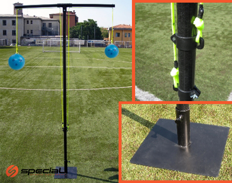 Konstrukcija za trening glavom za dvije lopte sa čahurom za ugradnju