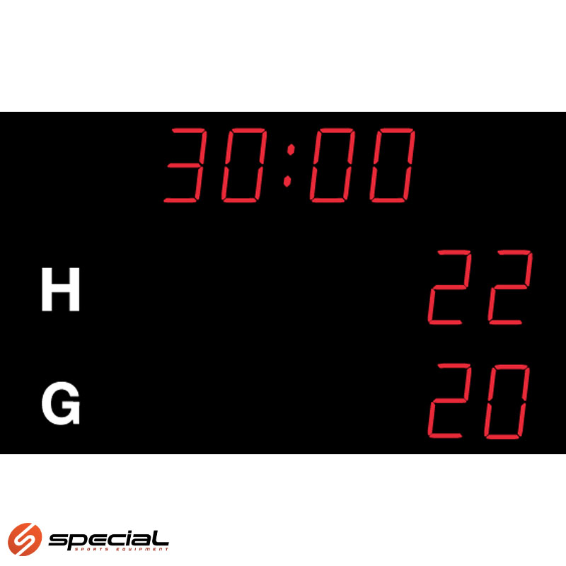 Elektronički semafor za nogomet model NHA2616 za vanjsku upotrebu. IP65. Dimenzije 200x120x8 cm. Znamenke rezultat (99.99) 26 cm, vrijeme (99.59) 26 cm, vidljivost 150 m, težibna 50 kg. Bežična komunikacija sa daljinskim upravljačem.