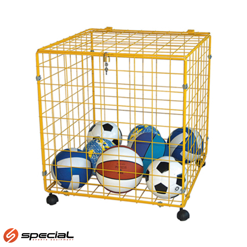 Kolica za lopte metalna mrežasta, plastificirana. Dimenzija 70x70x70 cm. Komplet sa kotačima i bravicom.