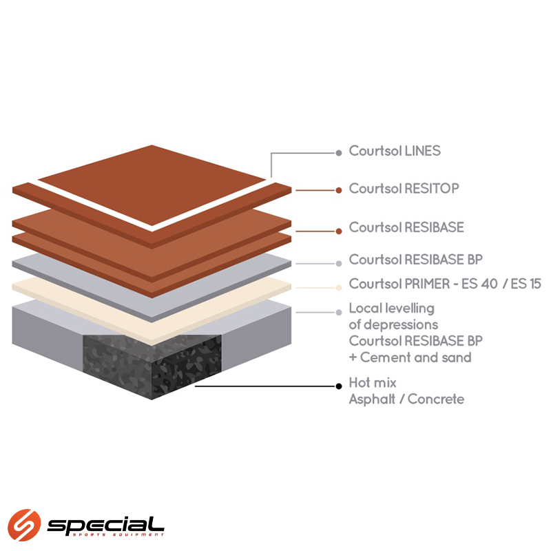 Zahvaljujući svoja dva sloja COURTSOL RESIBASE , ovaj novi COURTSOL TOURNAMENT sustav je izdržljiviji od COURSTOL STANDING sustava.